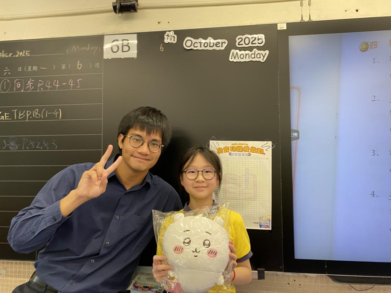 | 羅穎琳老師 | 大或細毛公仔一個 |