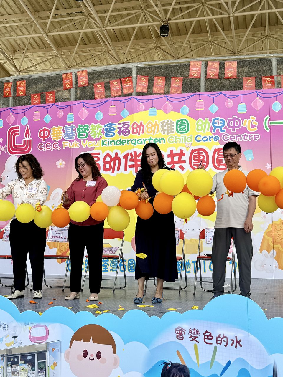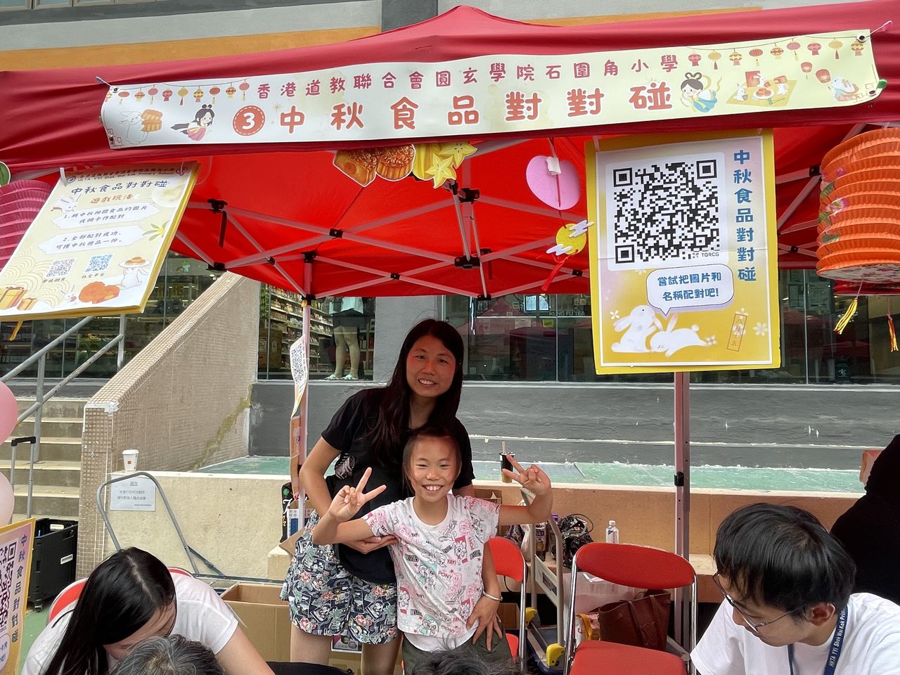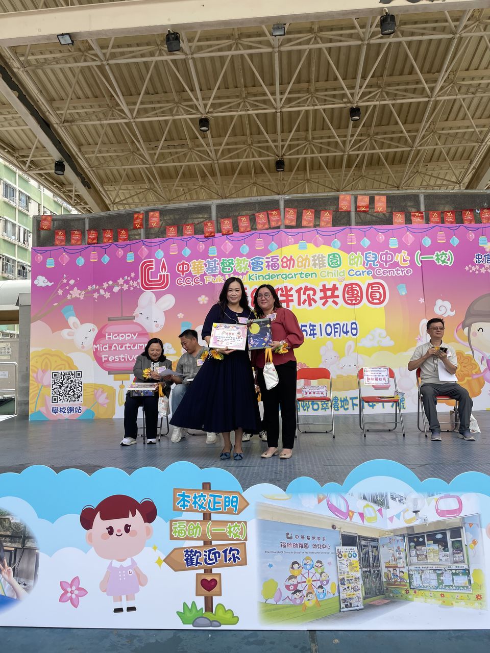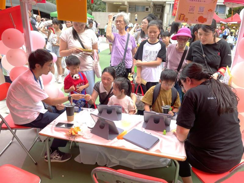10月4日中秋節前夕,本校獲邀參與由中華基督教會福幼幼稚園舉辦的「福幼伴你共團圓」活動,郭校長為活動擔任嘉賓,與老師們一同與荃灣區的居民及學生共同歡度中秋的傳統節日。今天正值颱風來襲,也懸掛著三號風球,但無阻居民的熱情,一同前來參與攤位遊戲。校長及老師們也忙於接待每一位參與者,更有不少長者到來石小的「中秋食品對對碰」攤位,嘗試以資訊科技來參與遊戲,學習了以英語表達中秋食品,完成遊戲後,更可獲得石小送上的獨特禮物,一起歡度中秋佳節,並送上滿滿的祝福。