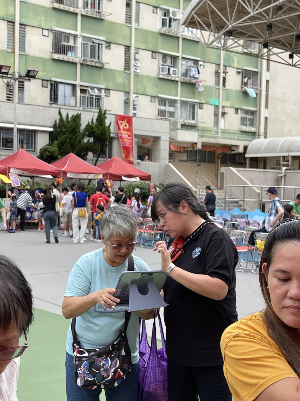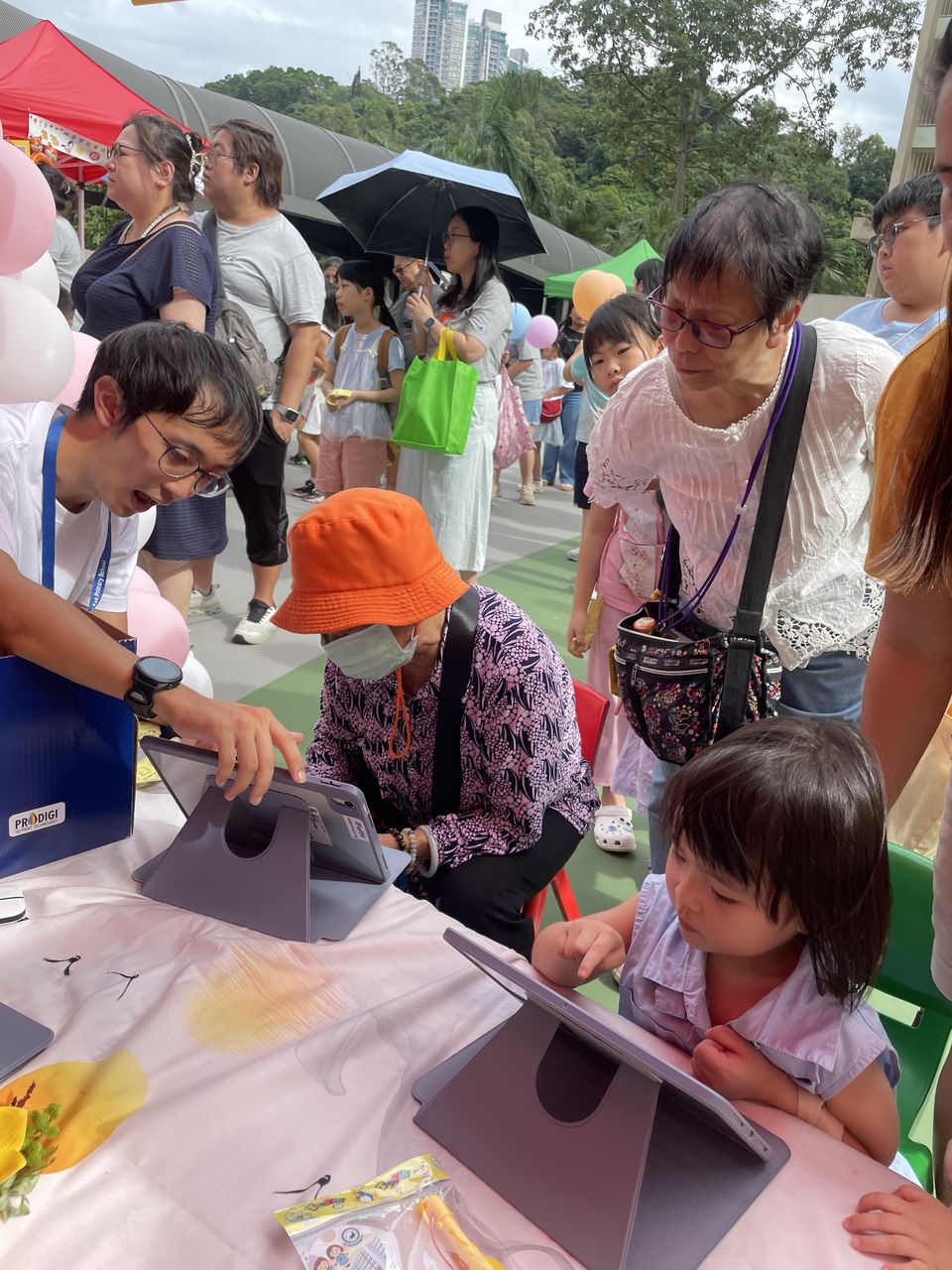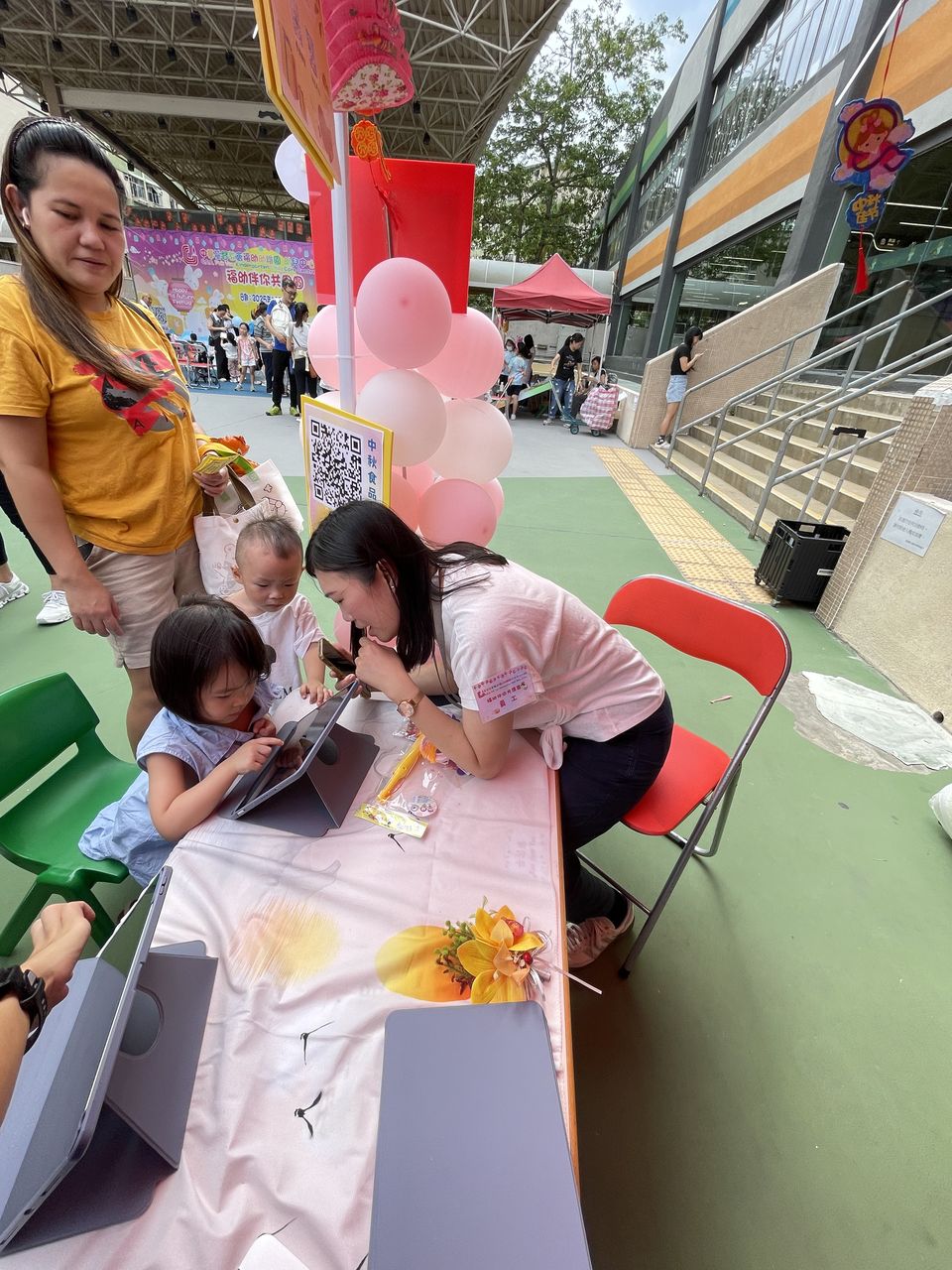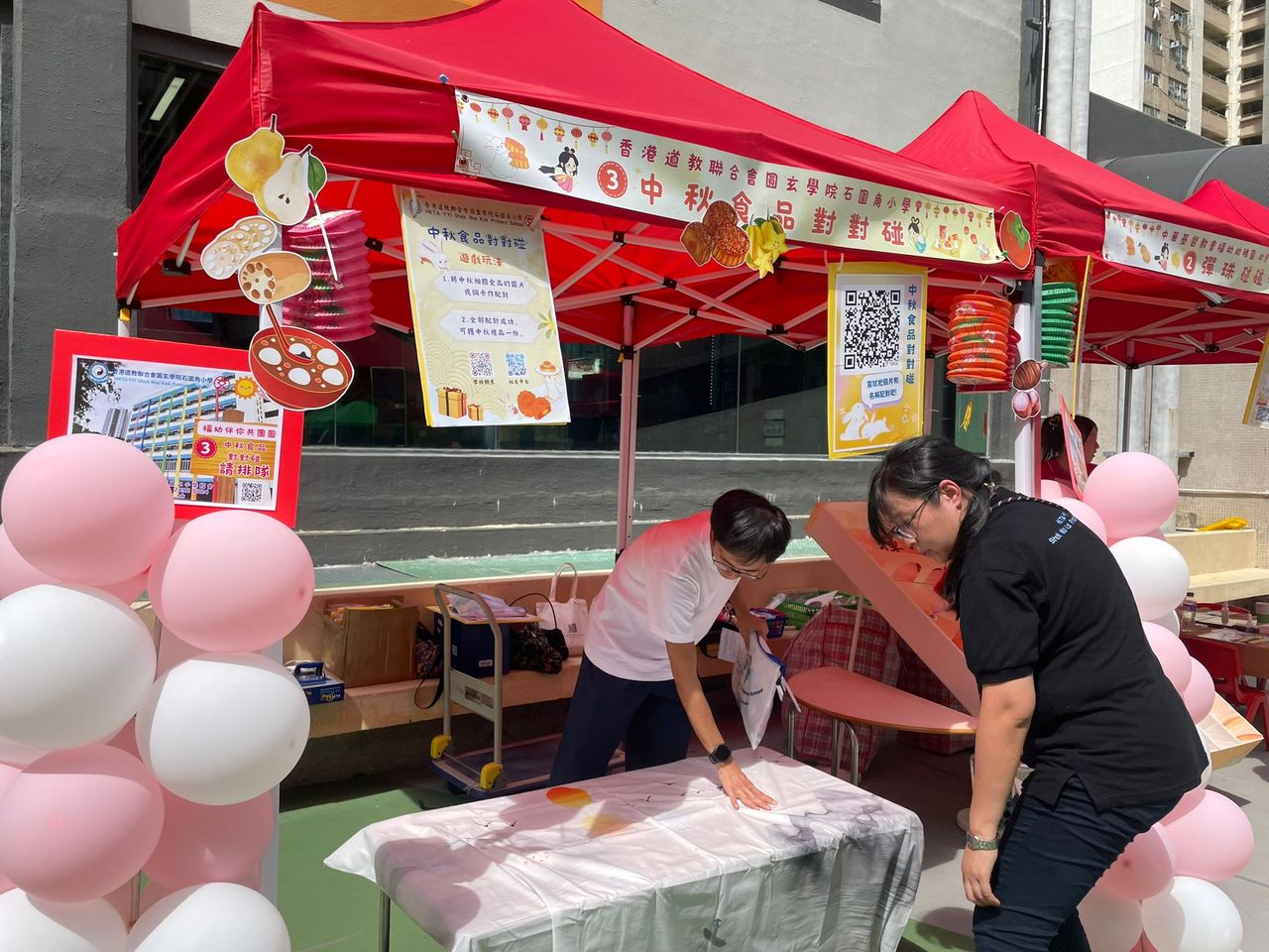 10月4日中秋節前夕,本校獲邀參與由中華基督教會福幼幼稚園舉辦的「福幼伴你共團圓」活動,郭校長為活動擔任嘉賓,與老師們一同與荃灣區的居民及學生共同歡度中秋的傳統節日。今天正值颱風來襲,也懸掛著三號風球,但無阻居民的熱情,一同前來參與攤位遊戲。校長及老師們也忙於接待每一位參與者,更有不少長者到來石小的「中秋食品對對碰」攤位,嘗試以資訊科技來參與遊戲,學習了以英語表達中秋食品,完成遊戲後,更可獲得石小送上的獨特禮物,一起歡度中秋佳節,並送上滿滿的祝福。