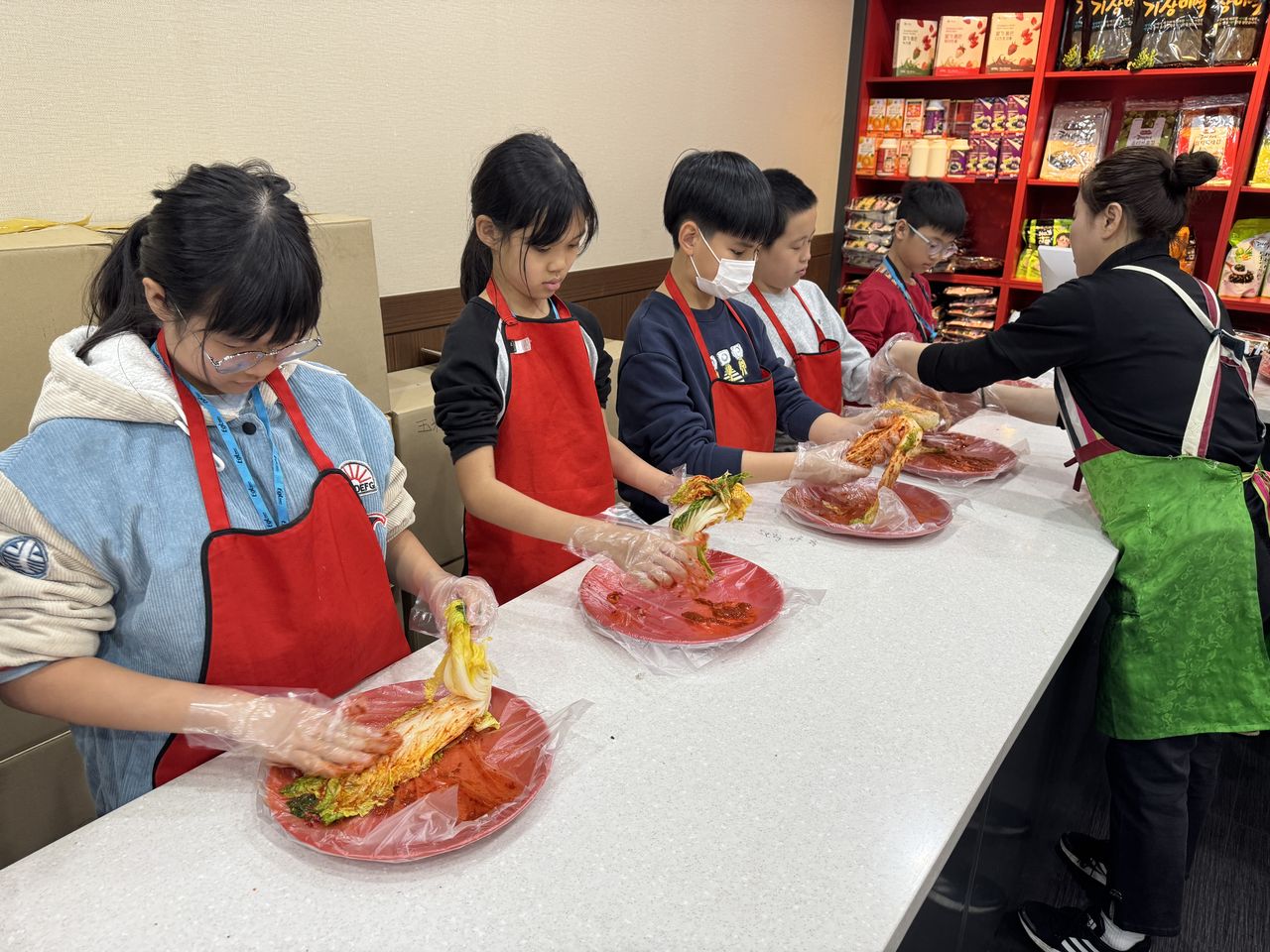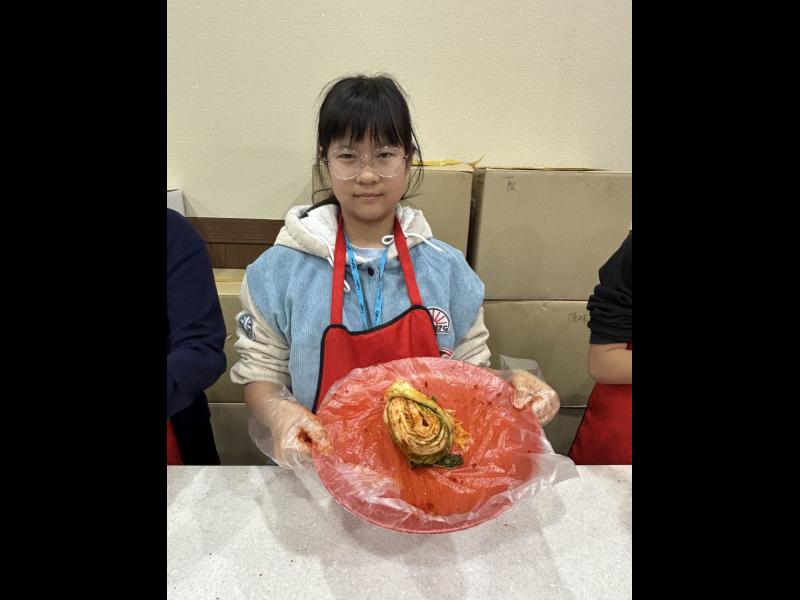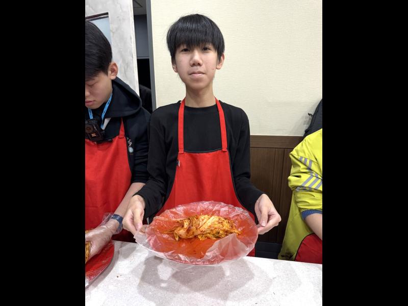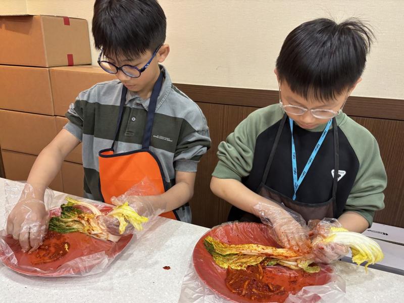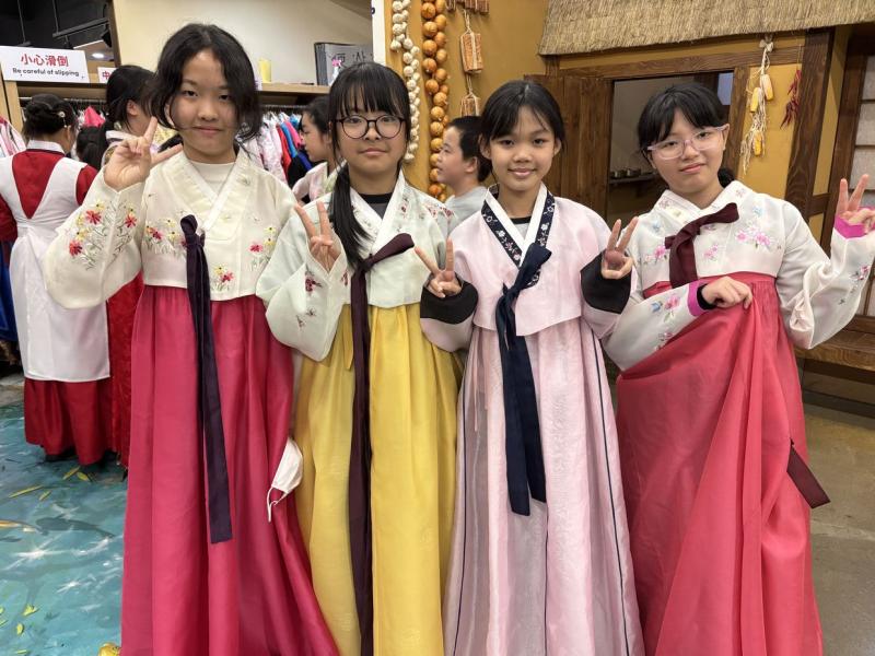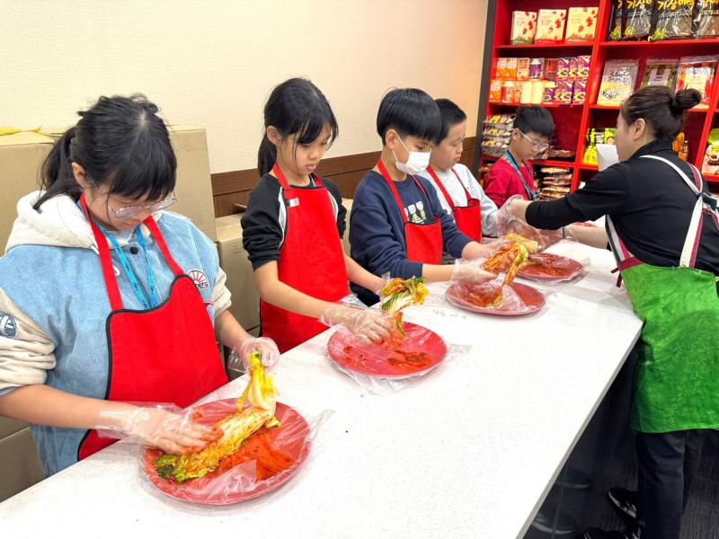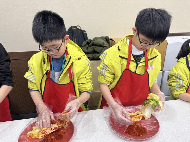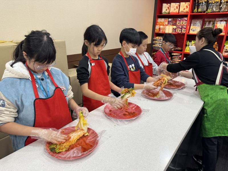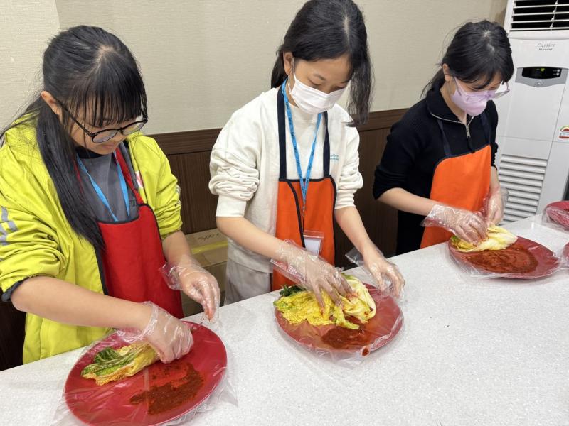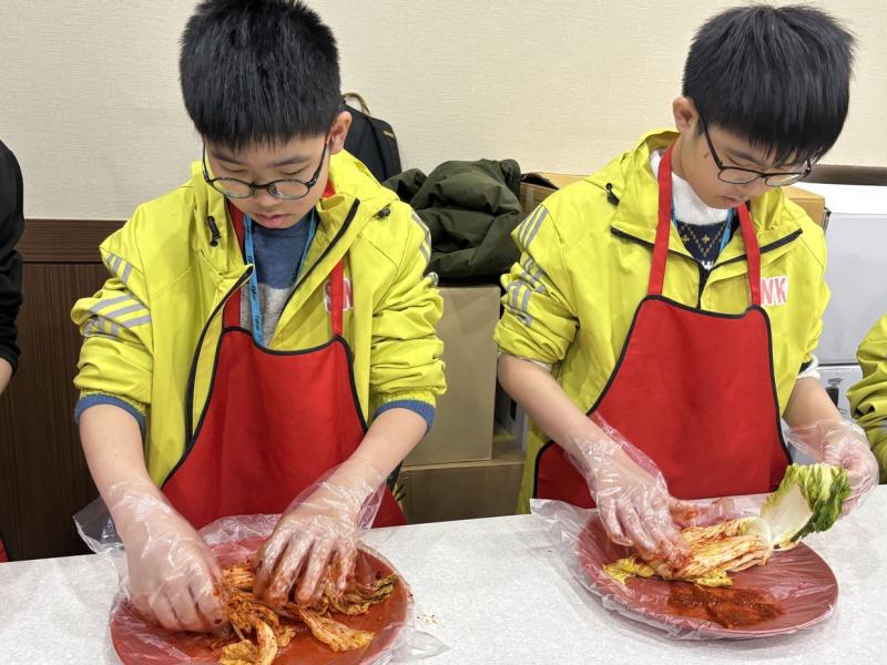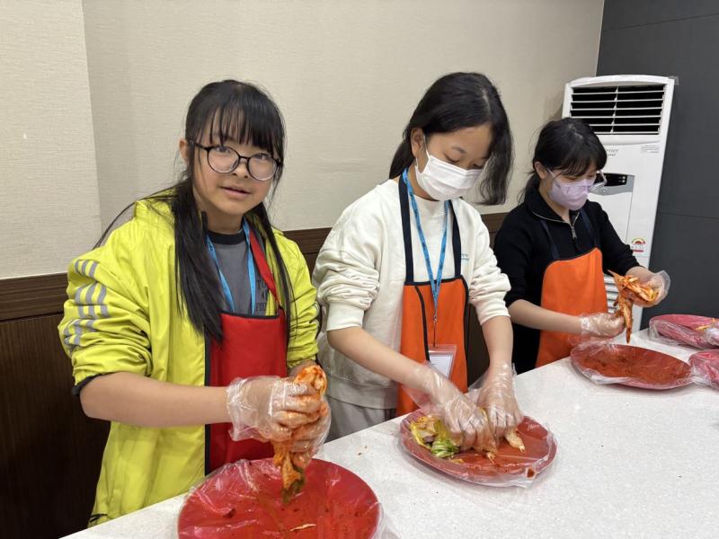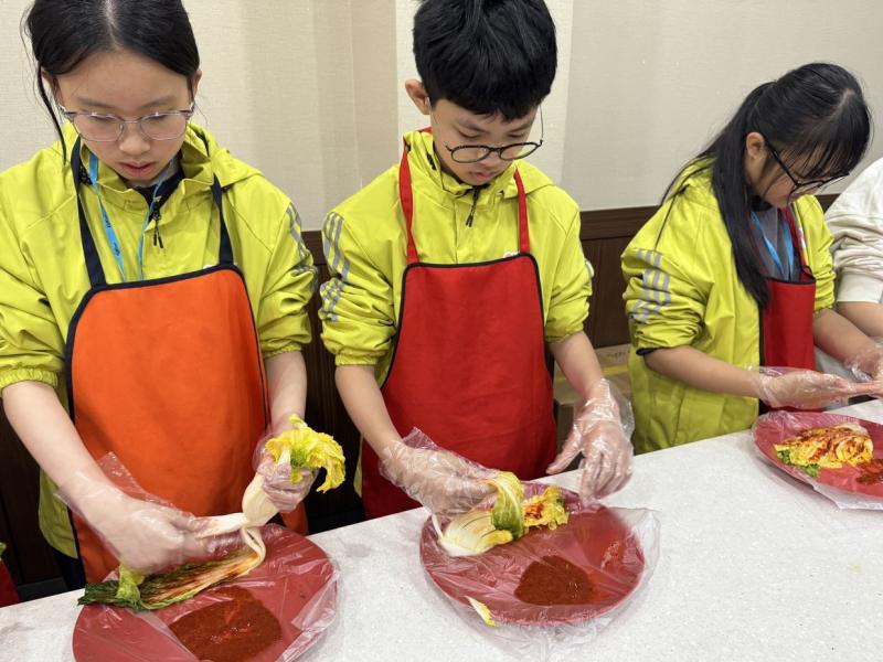接着來到「泡菜文化體驗館」,大家除了可以穿上漂亮的韓服,更可親手製作傳統泡菜,還把完成的泡菜捐贈給老人院及學校,學習愛與分享的真意