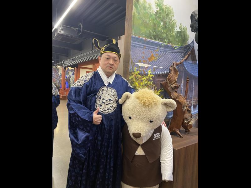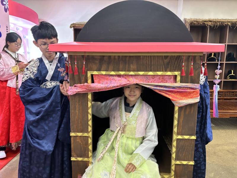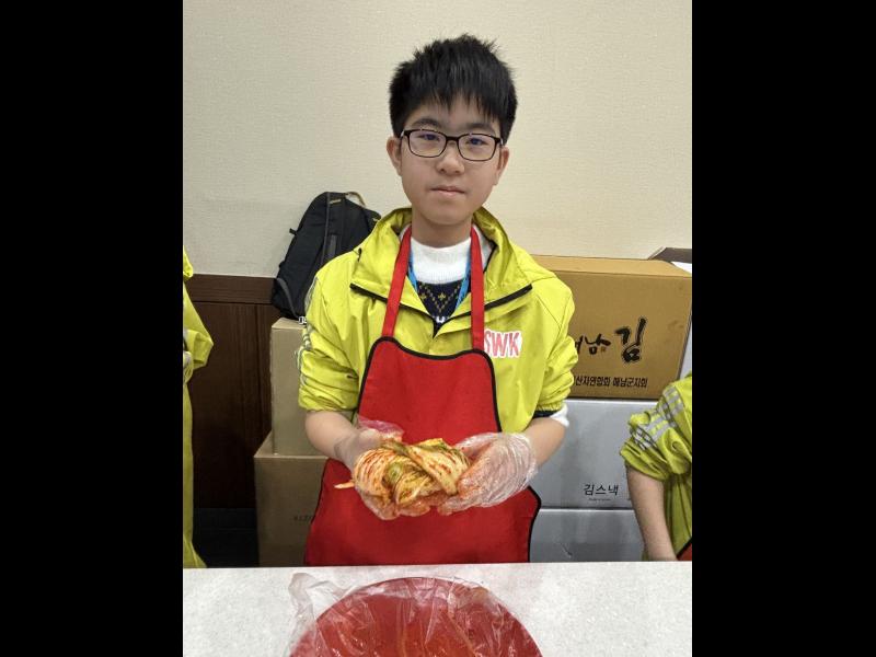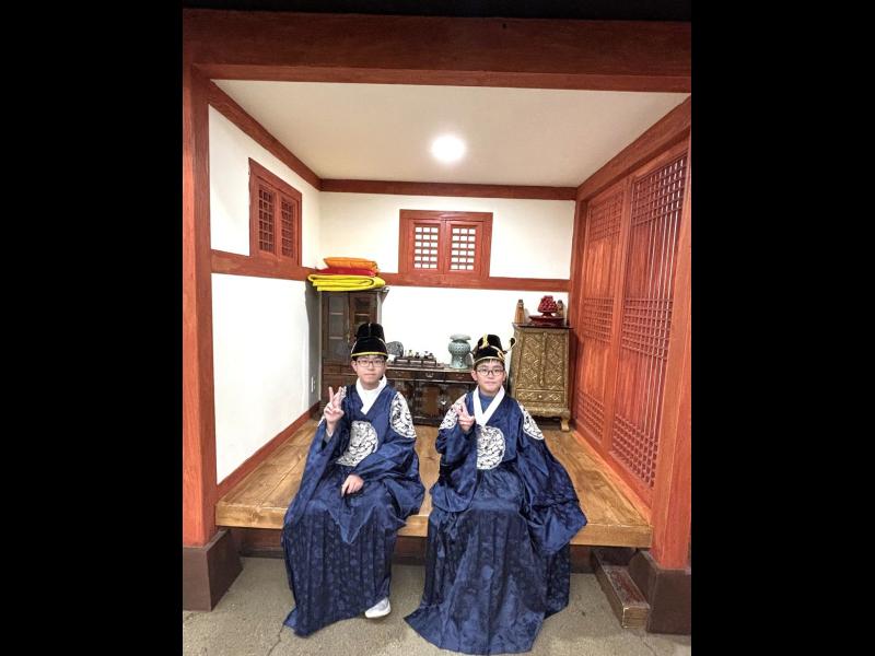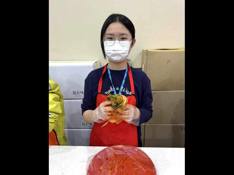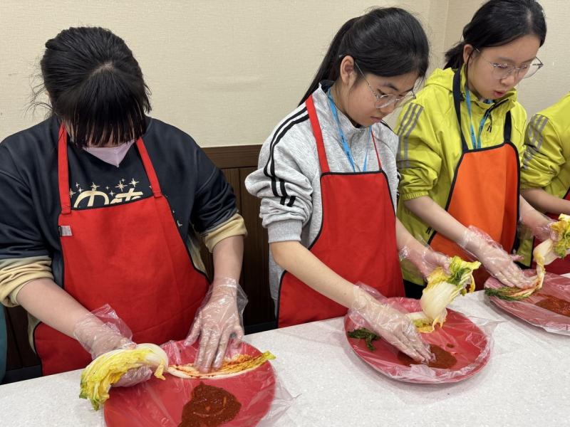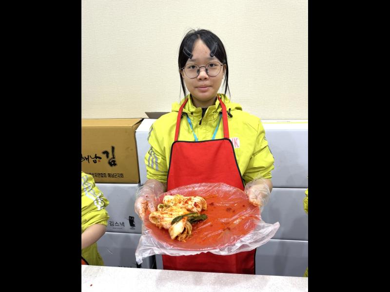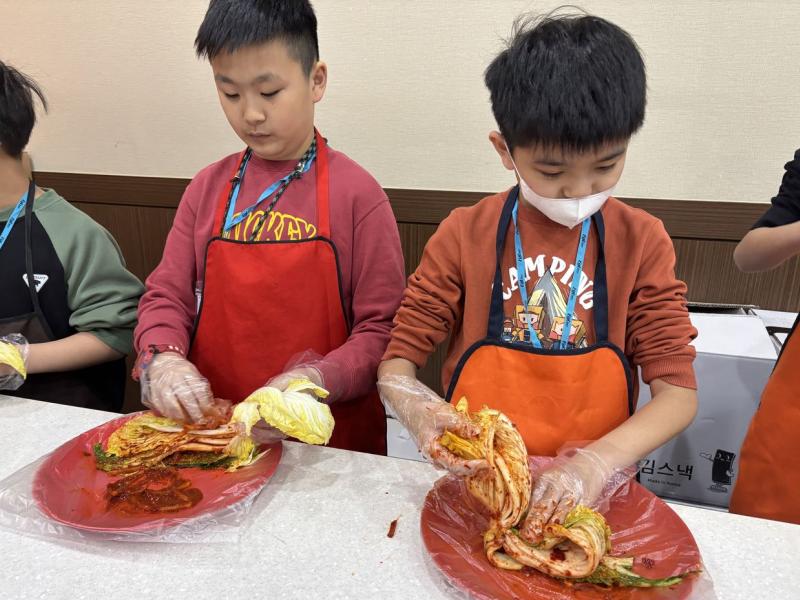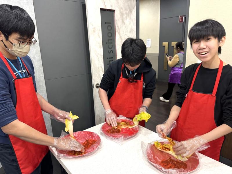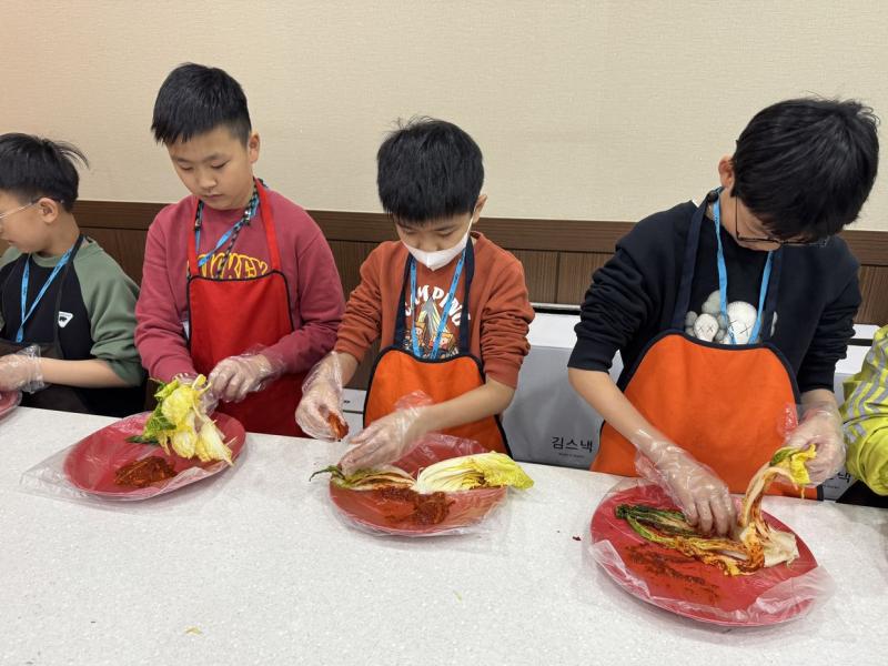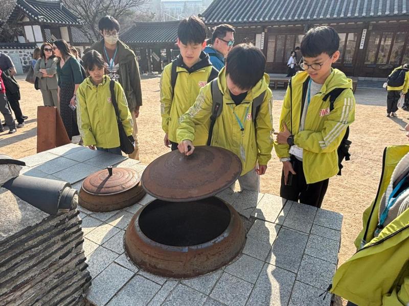 接着來到「泡菜文化體驗館」,大家除了可以穿上漂亮的韓服,更可親手製作傳統泡菜,還把完成的泡菜捐贈給老人院及學校,學習愛與分享的真意