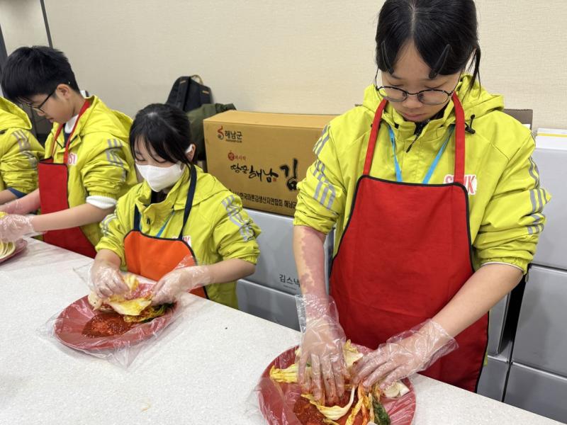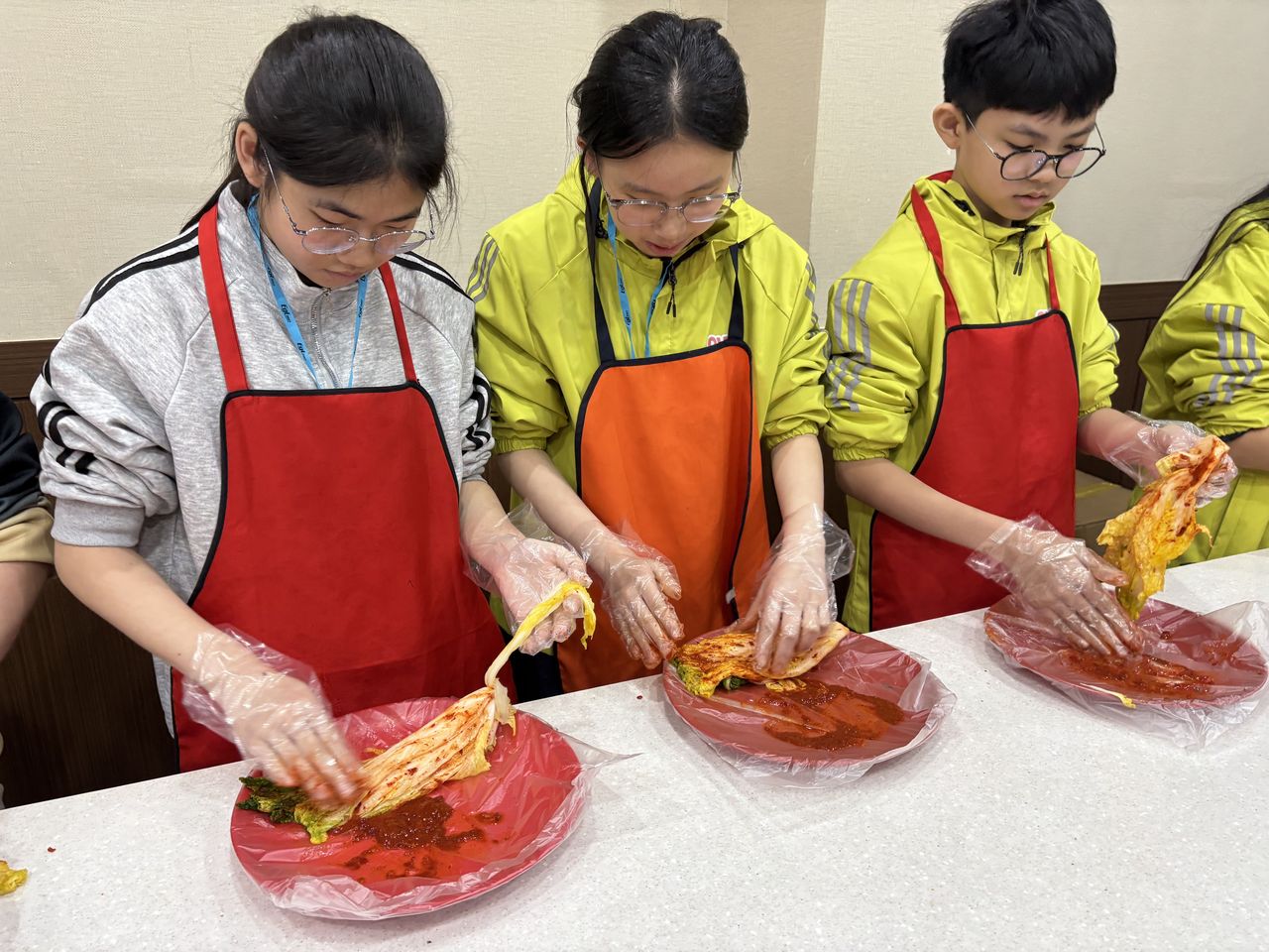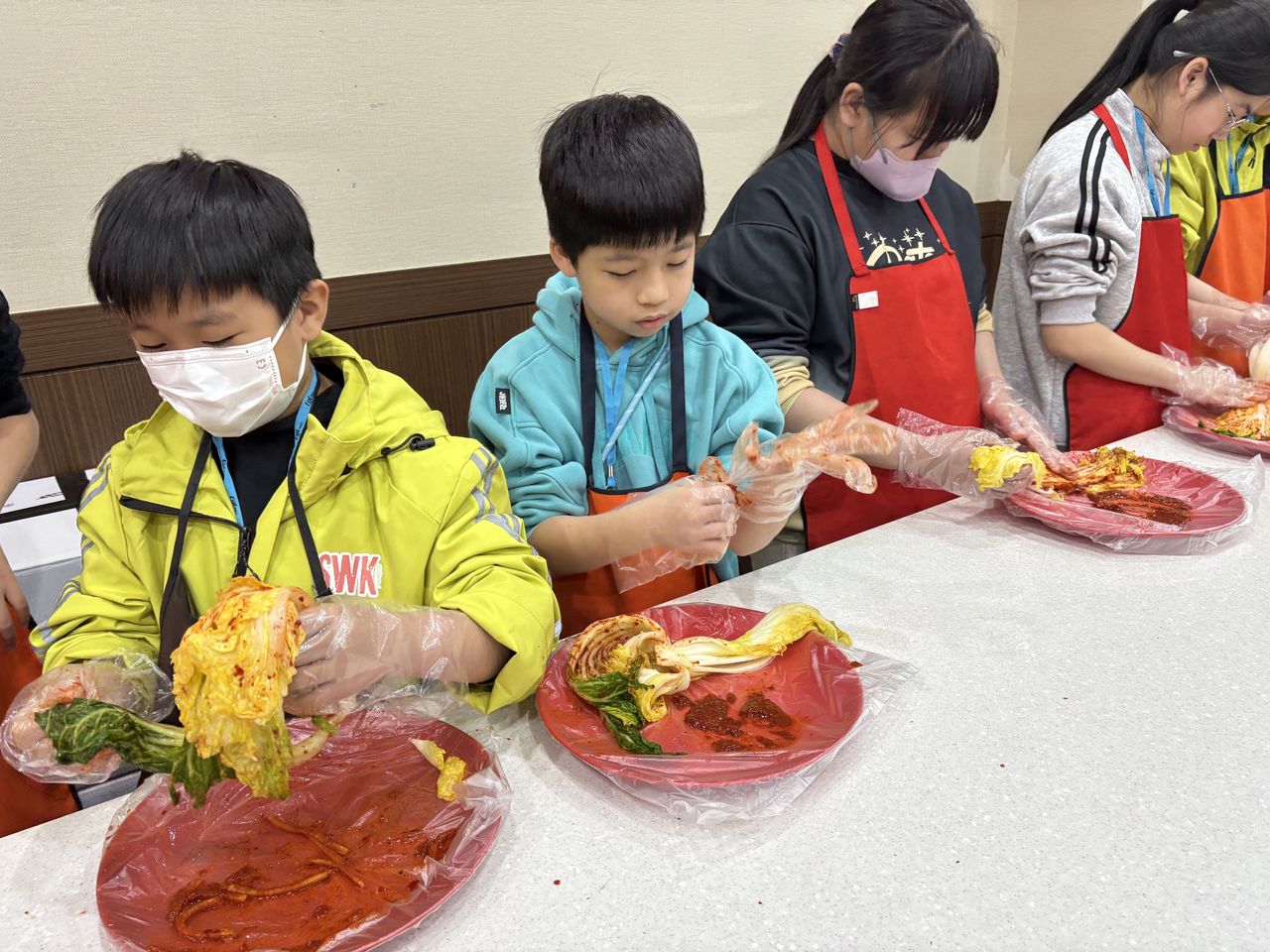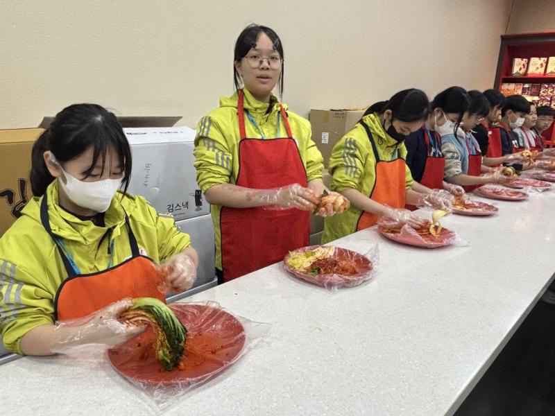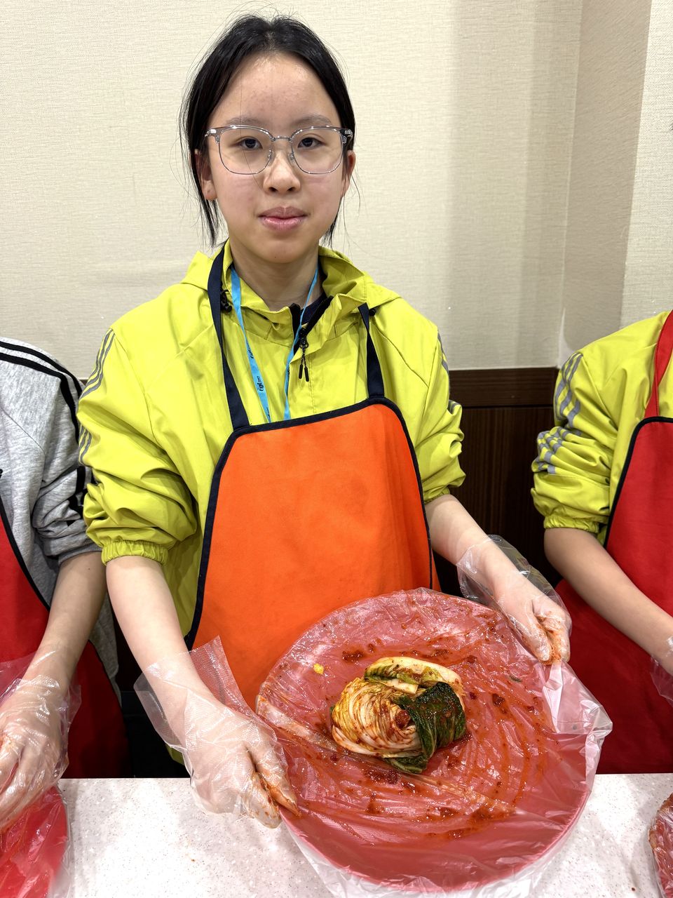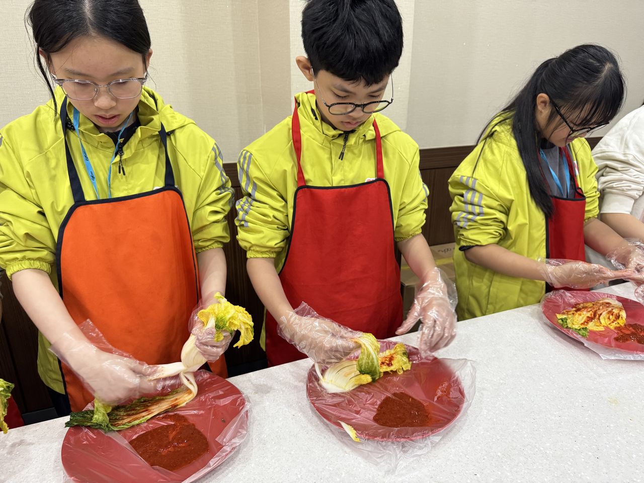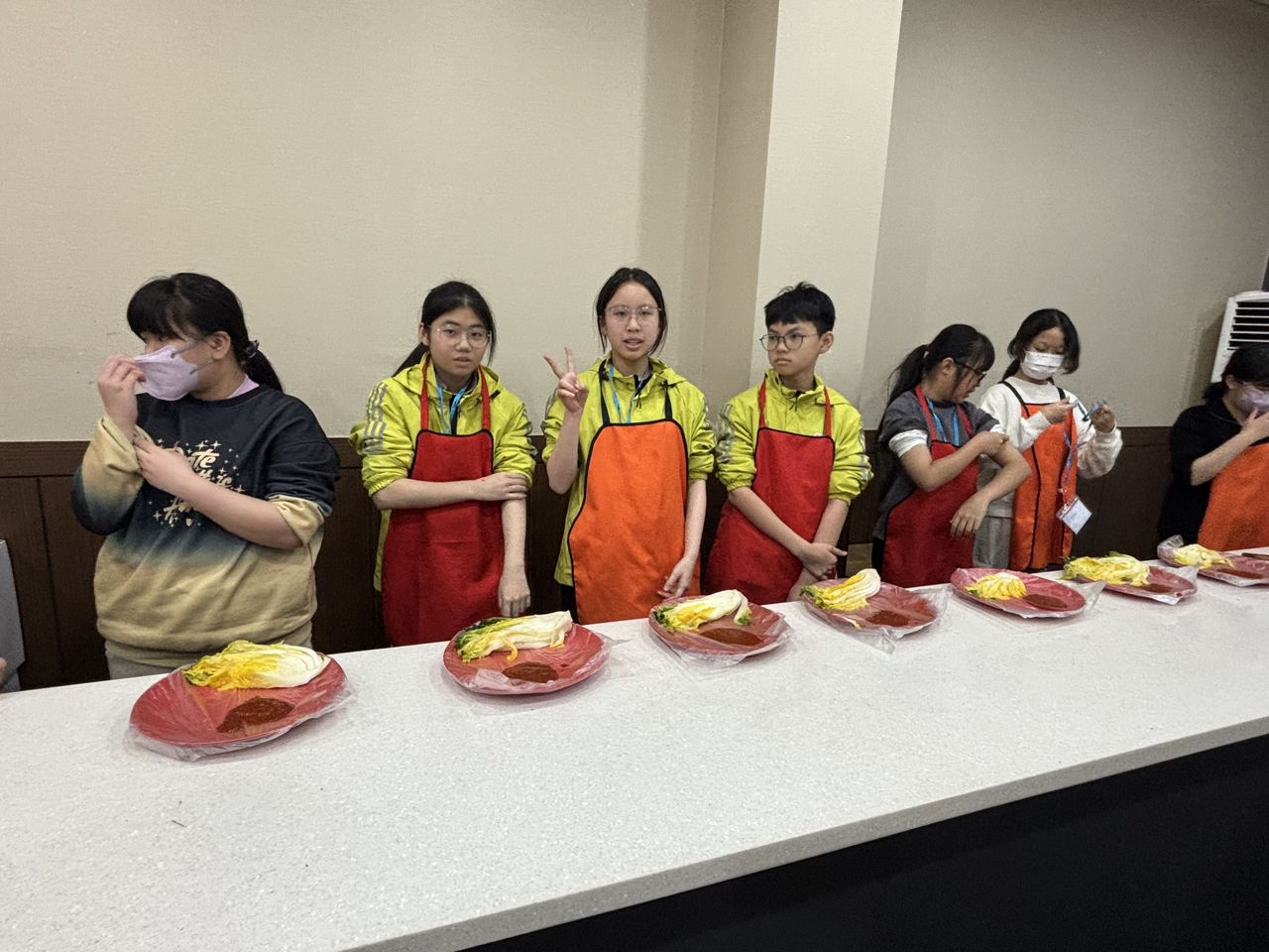 接着來到「泡菜文化體驗館」,大家除了可以穿上漂亮的韓服,更可親手製作傳統泡菜,還把完成的泡菜捐贈給老人院及學校,學習愛與分享的真意
