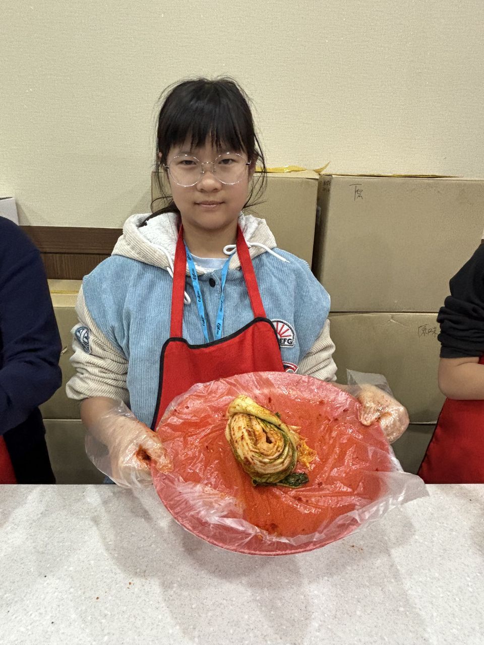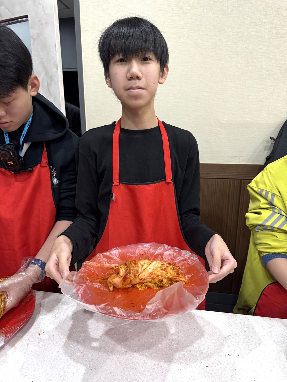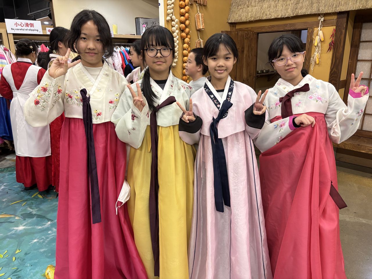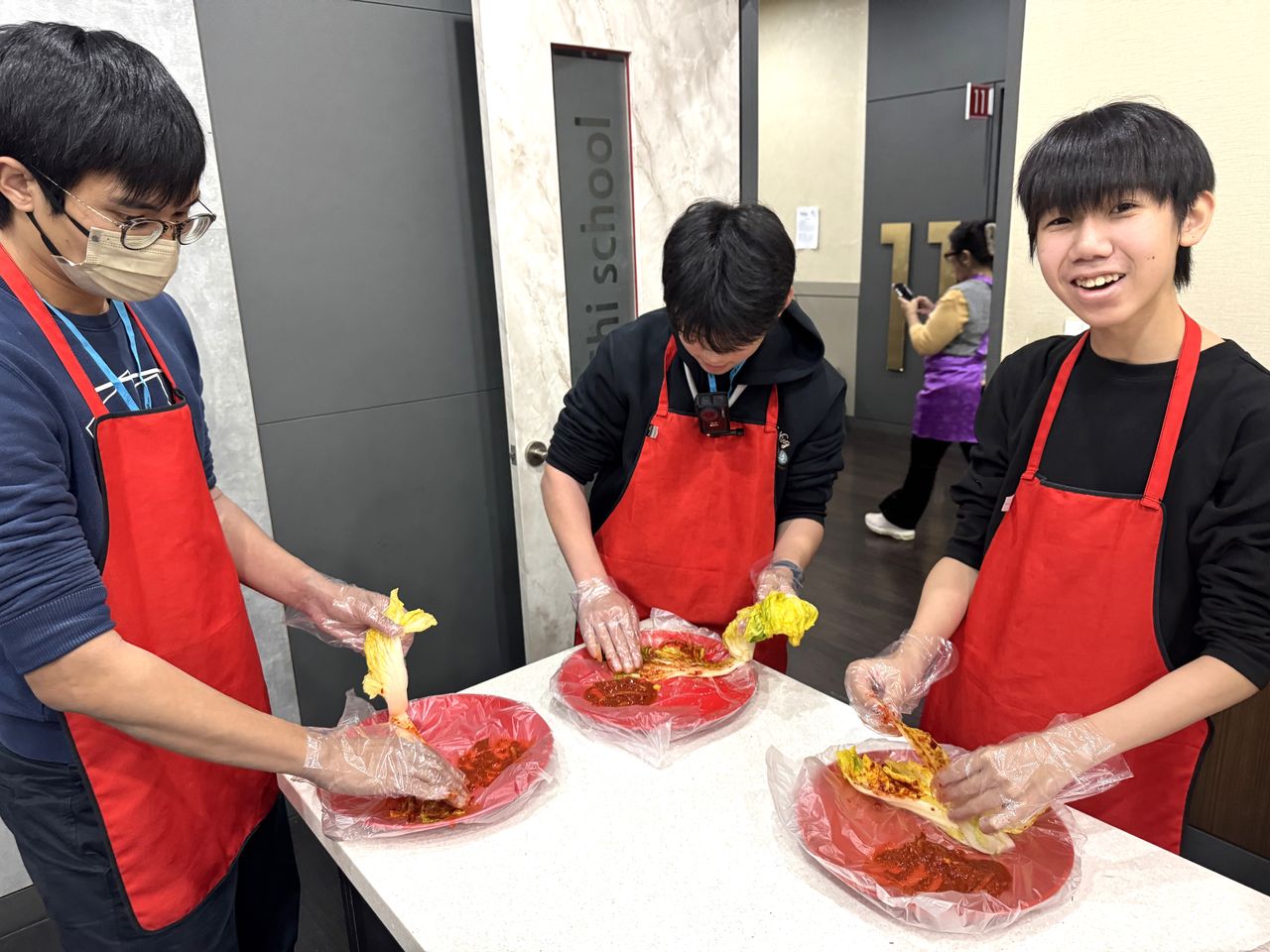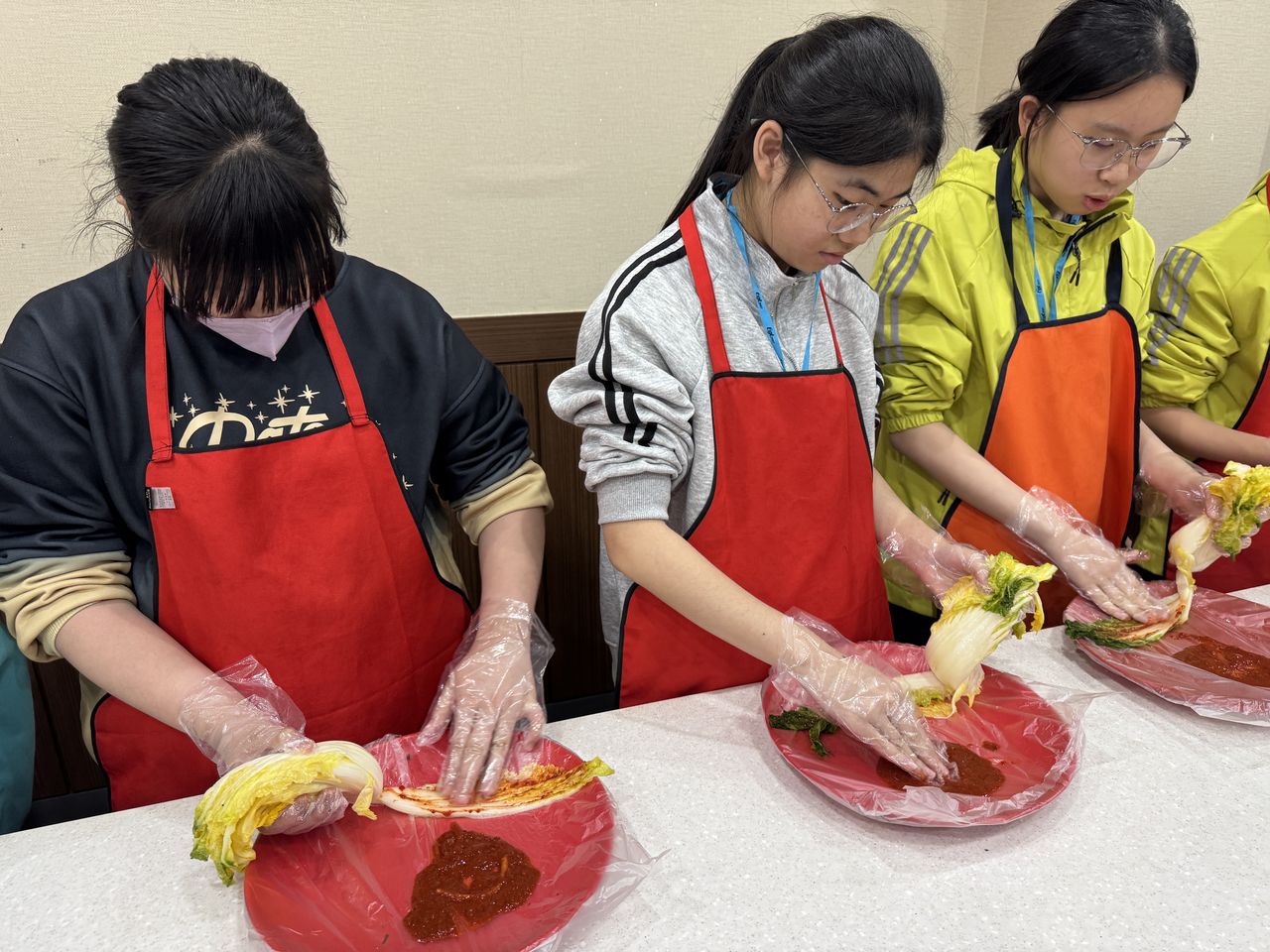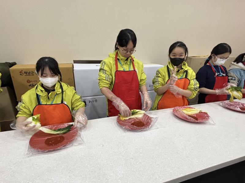 接着來到「泡菜文化體驗館」,大家除了可以穿上漂亮的韓服,更可親手製作傳統泡菜,還把完成的泡菜捐贈給老人院及學校,學習愛與分享的真意