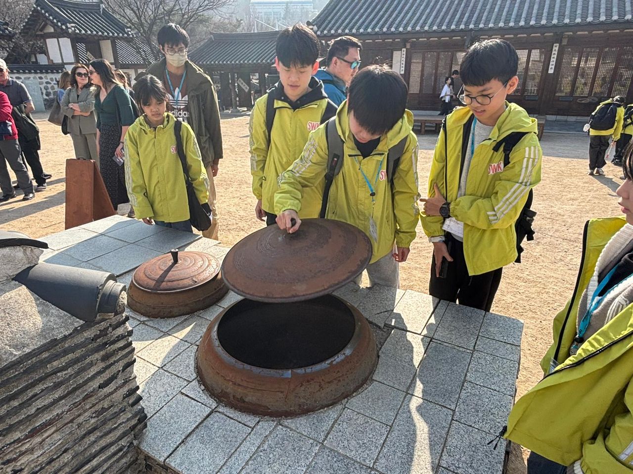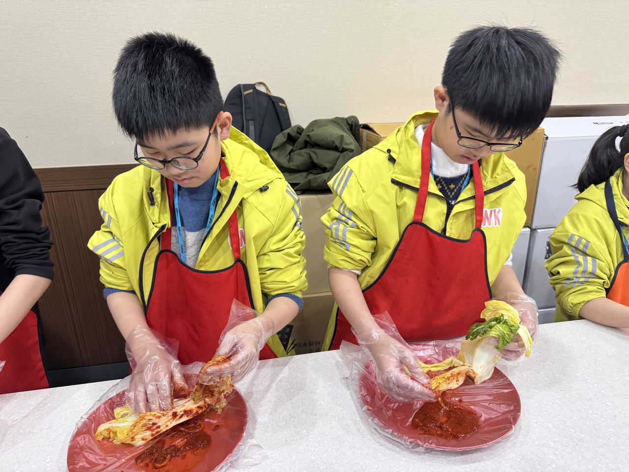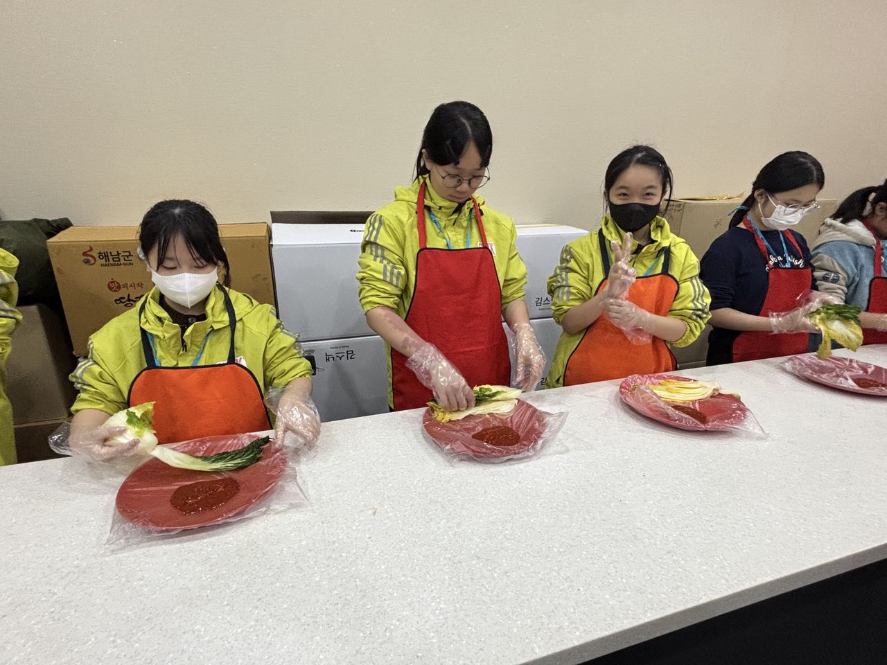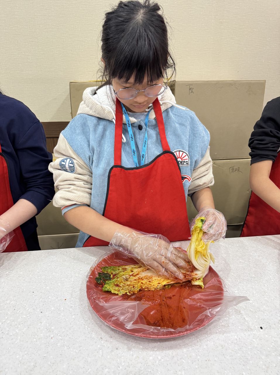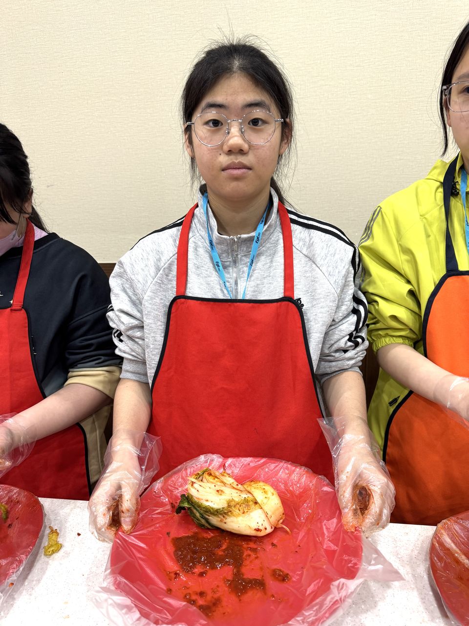 接着來到「泡菜文化體驗館」,大家除了可以穿上漂亮的韓服,更可親手製作傳統泡菜,還把完成的泡菜捐贈給老人院及學校,學習愛與分享的真意