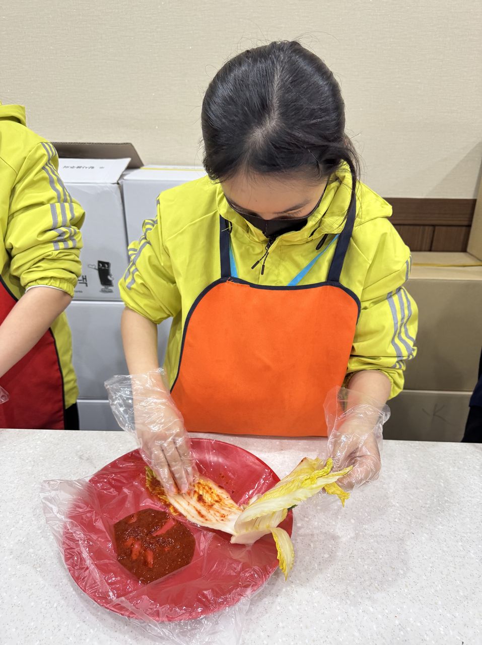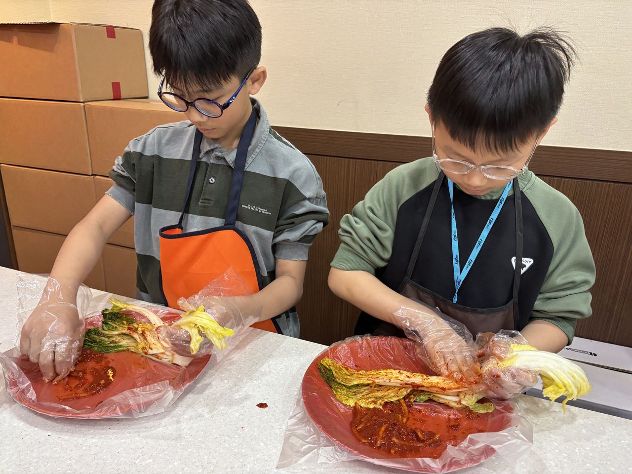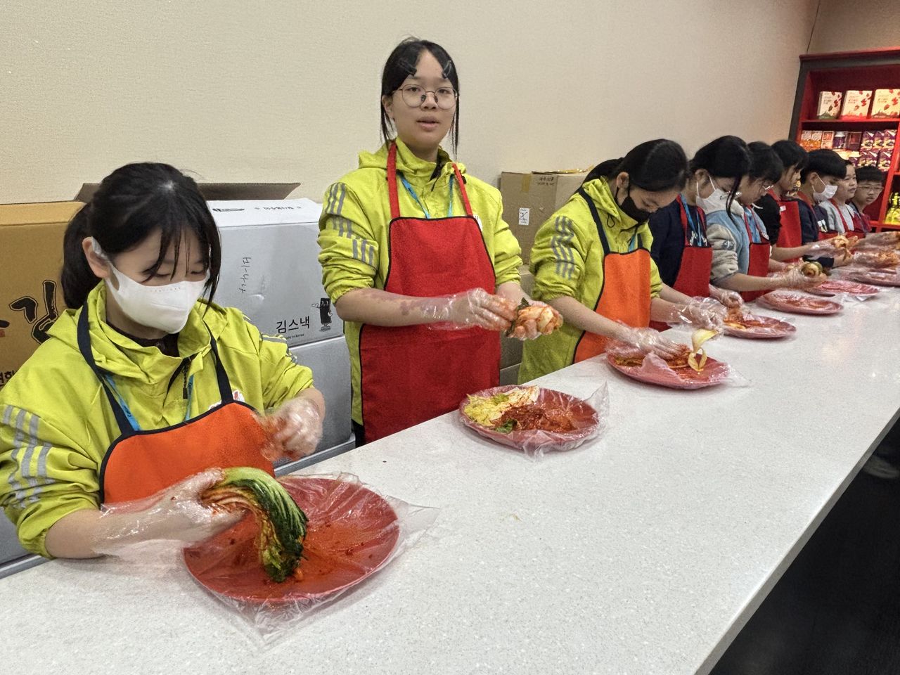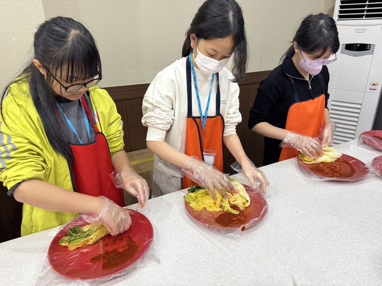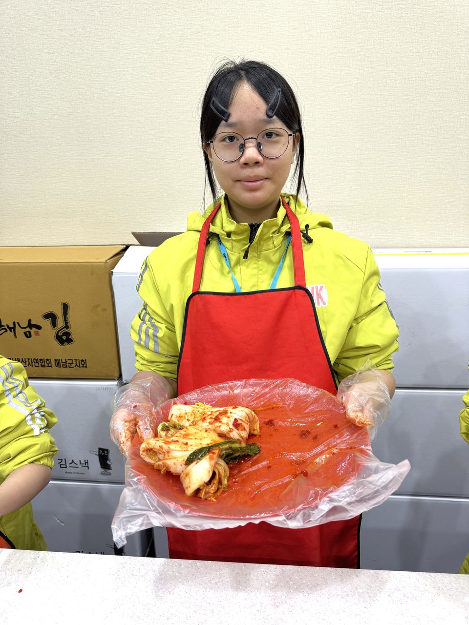 接着來到「泡菜文化體驗館」,大家除了可以穿上漂亮的韓服,更可親手製作傳統泡菜,還把完成的泡菜捐贈給老人院及學校,學習愛與分享的真意