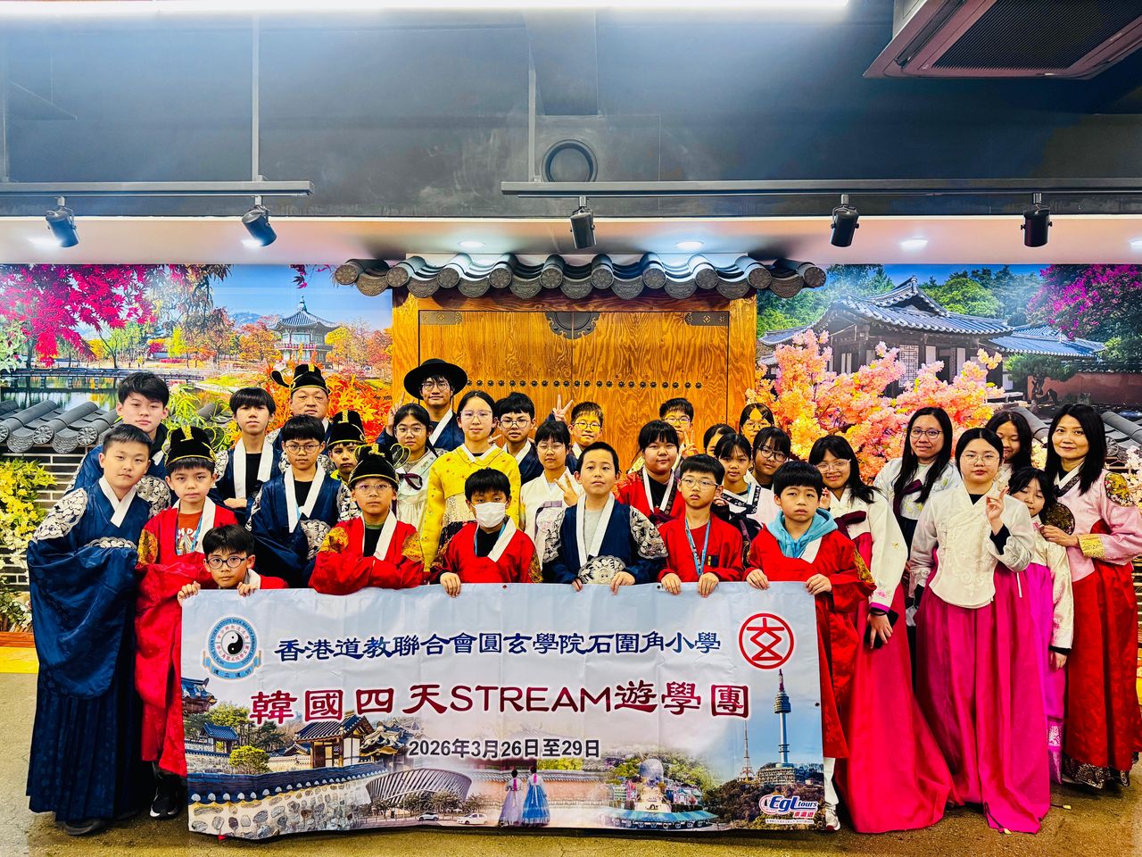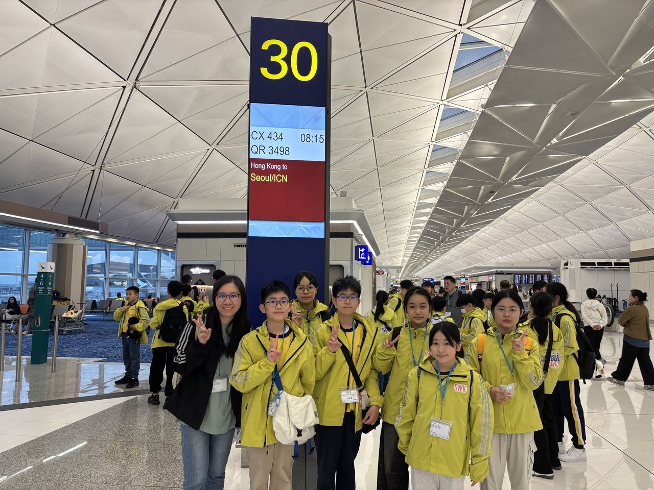 為體驗韓國的多元文化與生活方式,提升學生的國際視野,培養跨文化交流技巧,建立自信心,在晨光仍未照亮大地,一班前往韓國遊學團的同學們已整裝待發,