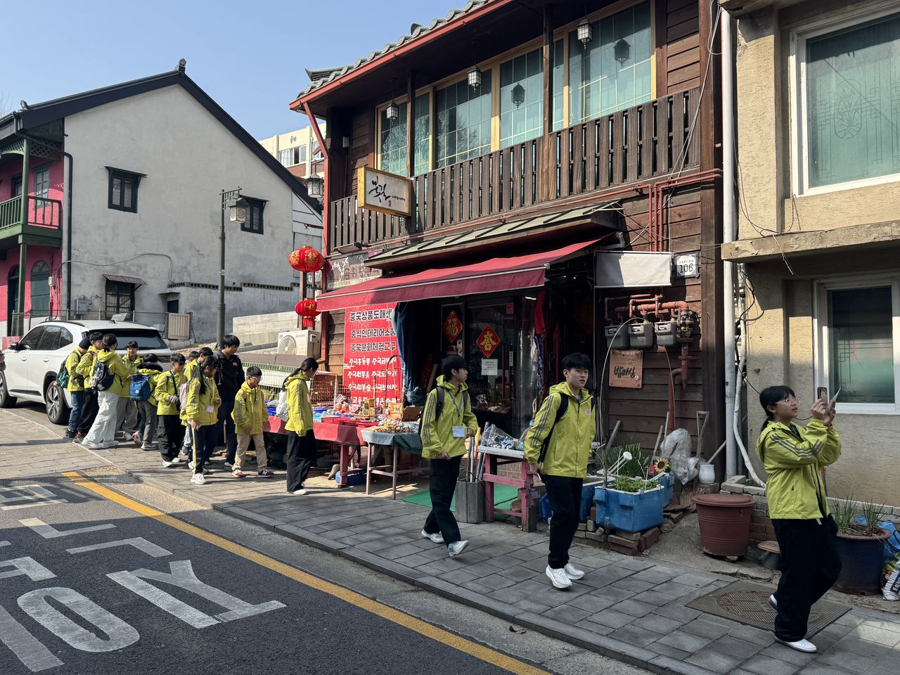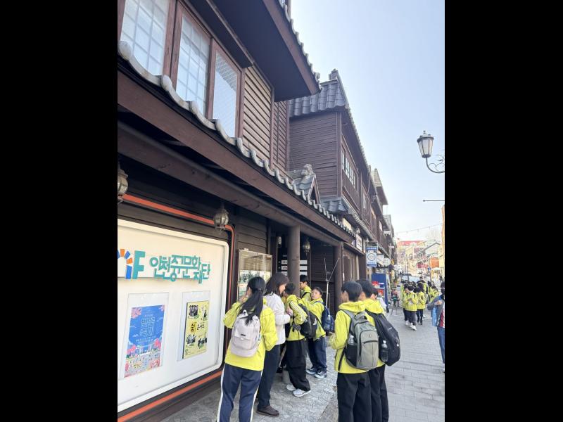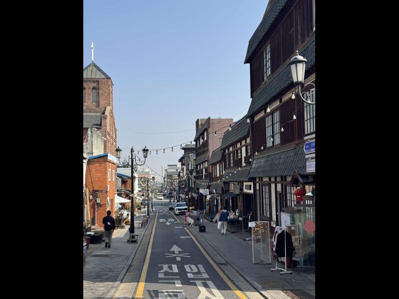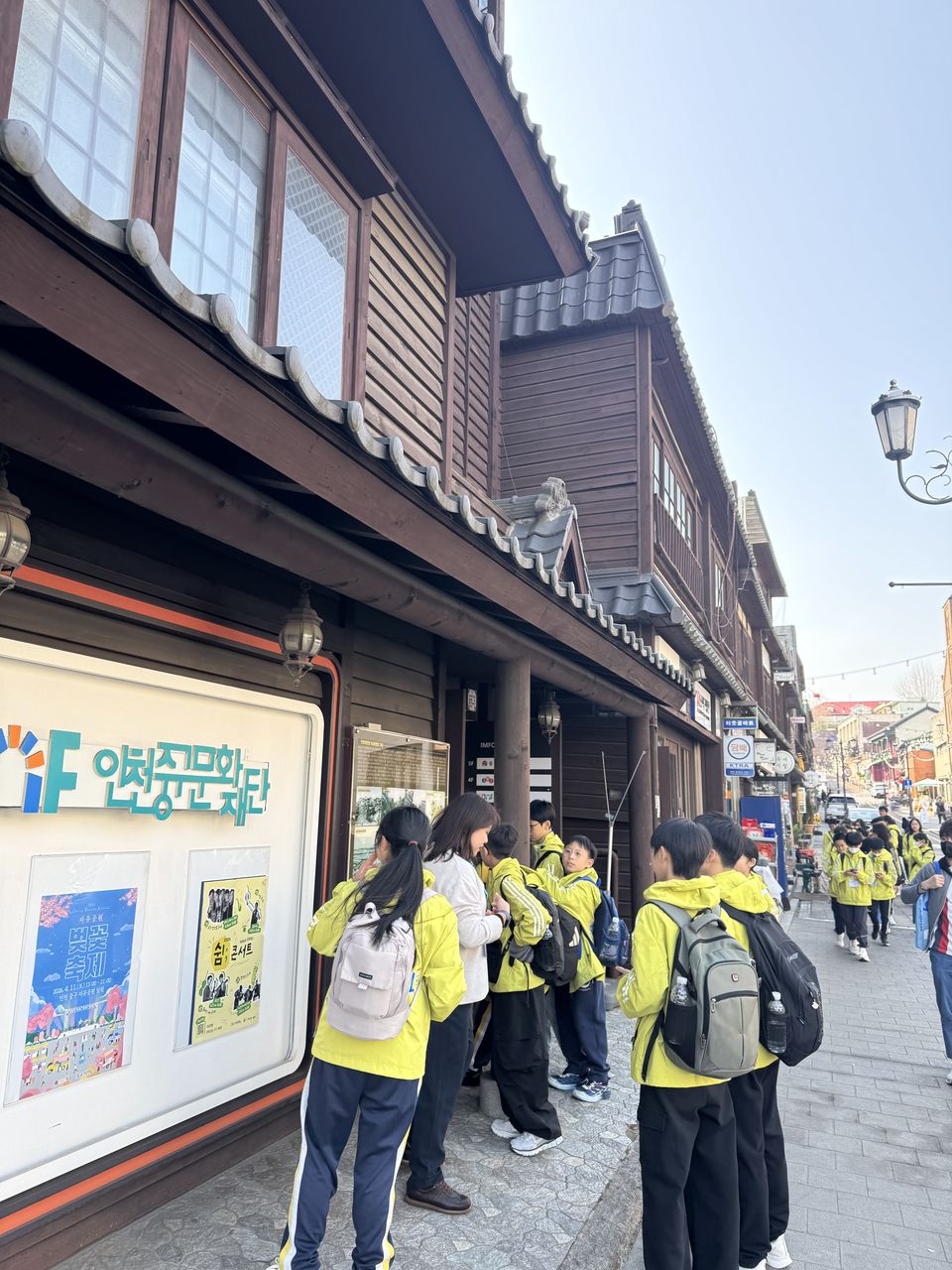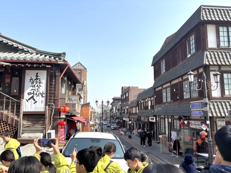 到達仁川國際機場後,同學們便爭取時間,立即前往仁川開港商街遊覽。街道就好像時光機,舊舊的洋樓和石板路